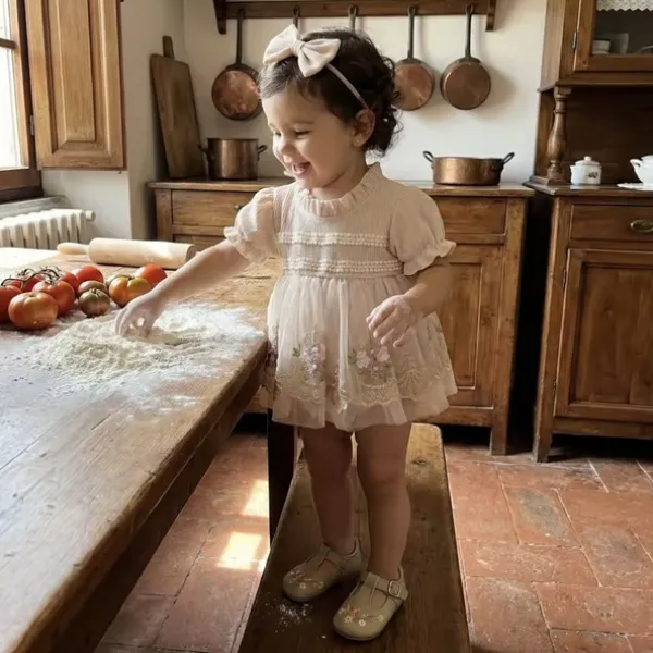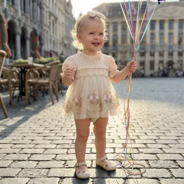 Тази бебешка рокля с тюл осигурява комфорт през целия ден благодарение на меката и лека материя. Практичните копчета позволяват бързо и лесно преобличане, а стилният дизайн я прави подходяща както за ежедневие, така и за специални поводи.