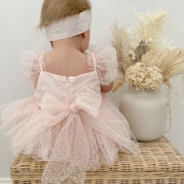 Бебешка боди рокля с тюл в изящен цвят сьомга с бели точици е перфектният избор за специални поводи и ежедневни разходки. Моделът съчетава удобството на боди с визията на стилна рокля, създавайки ефирна и модерна визия за вашето дете.