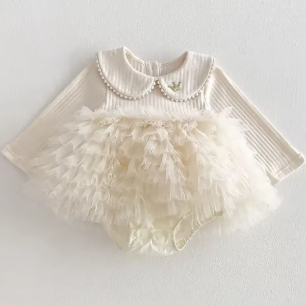 Бебешка памучна боди рокля крем с тюл Antoanette
