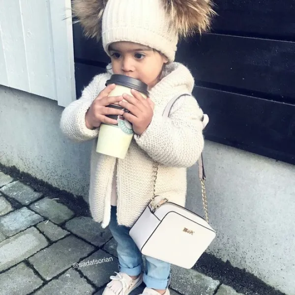 Бяла бебешка шапка с два естествени помпона от ракун е стилен и практичен аксесоар за студените дни. Моделът осигурява отлична защита от студ и комфорт за бебето, като съчетава функционалност и елегантна визия.