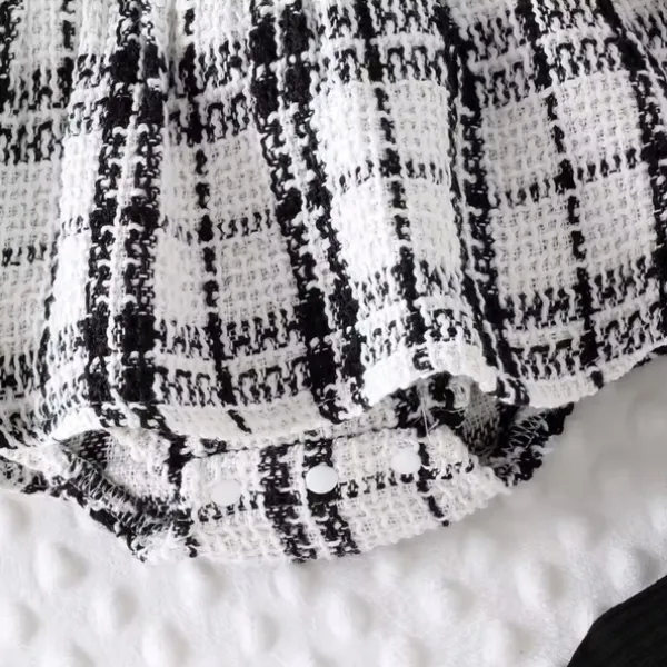 Бебешкият комплект Black-White Boucle комбинира модерен дизайн с практичност. Памучната горна част осигурява нежност и дишане, а букле полата придава стил и обем. Чорапките и лентата за глава завършват визията и превръщат комплекта в идеален подарък за новородено или специален повод.