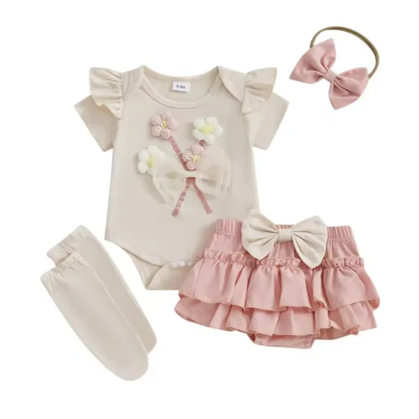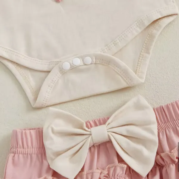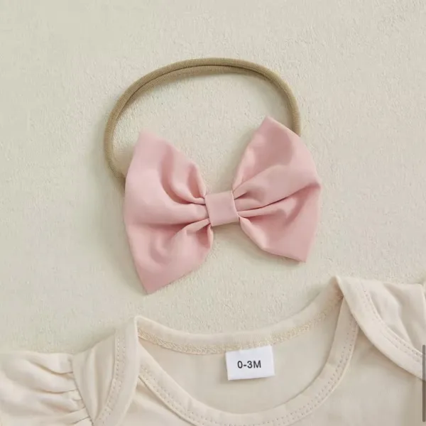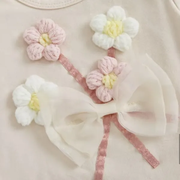 - Боди: къс ръкав, кремав цвят, декориран с 3D цветя и елегантна панделка