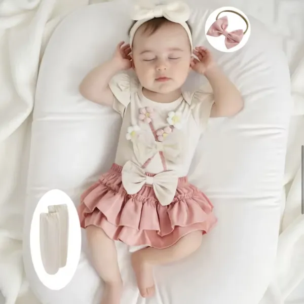 Бебешки комплект с боди, пола-панталонки, чорапки и лента за глава – стил и хармония в едно