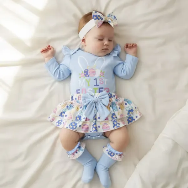 Бебешки комплект в небесно синьо, създаден специално за първите празнични моменти на вашето мъниче. Нежният дизайн, комбиниран с висококачествени материи, прави този сет идеален избор за Великден, фотосесии и ежедневна употреба. Комплектът съчетава комфорт, стил и празнично настроение в едно.