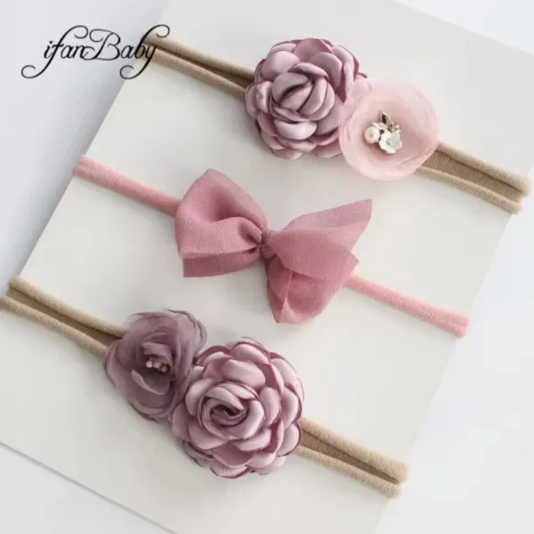 Този комплект бебешки ленти за глава включва 3 нежни аксесоара в топли розово-лилави цветове, създадени да допълнят визията на всяко малко момиченце. Подходящи още от първите дни, тези еластични ленти за бебе осигуряват удобство без притискане.