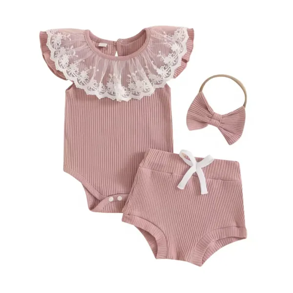 С този бебешки комплект в тъмно розово ще придадете на визията на вашето бебе нотка на елегантност и чар. Дантелата добавя фин ретро акцент, а висококачествените материи осигуряват удобство през целия ден. Поръчайте сега и подарете на детето си изискано облекло, създадено с любов!