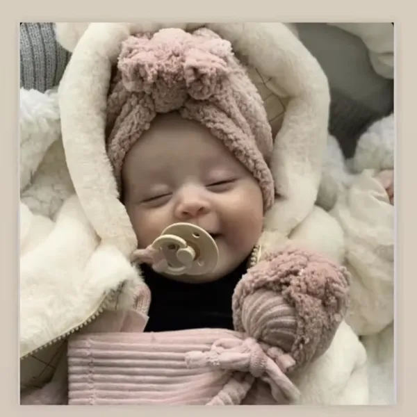 Този бебешки плюшен тюрбан комбинира практичност и стил. Той предпазва от студа, не дразни нежната кожа и придава чаровна визия на вашето дете. Подходящ е за подарък, а модерният му дизайн го прави чудесен избор за всяка малка принцеса.