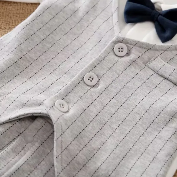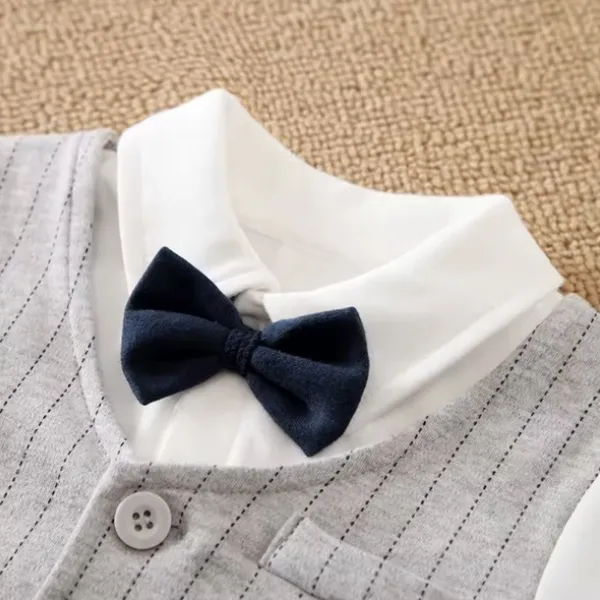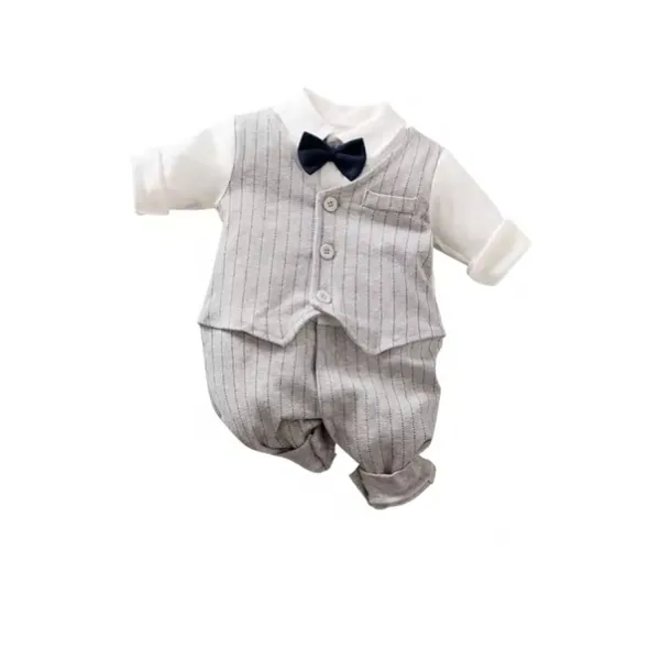Този елегантен бебешки ромпър в сиво и бяло съчетава удобство, мекота и изискан дизайн, за да осигури максимален комфорт на вашето бебе. Създаден от 100% висококачествен памук, моделът е идеален за ежедневие, специални поводи и фотосесии.