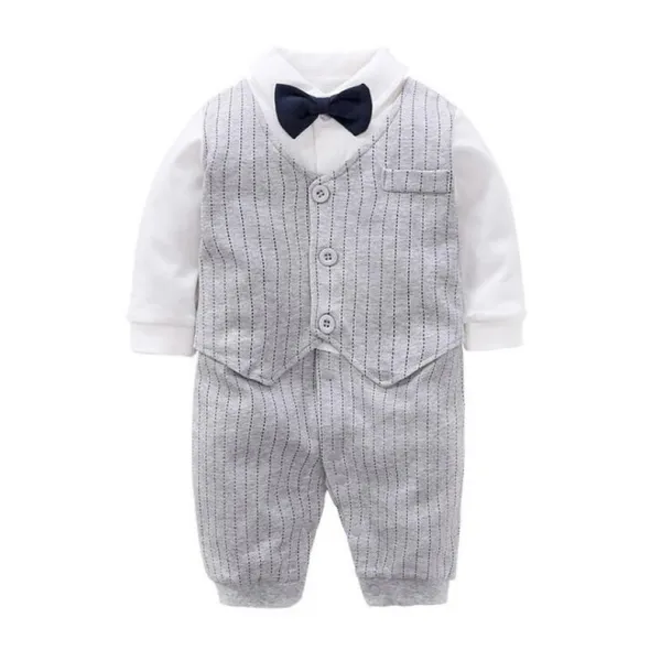 Бебешки ромпър в сиво и бяло от 100% памук Mr. Gray