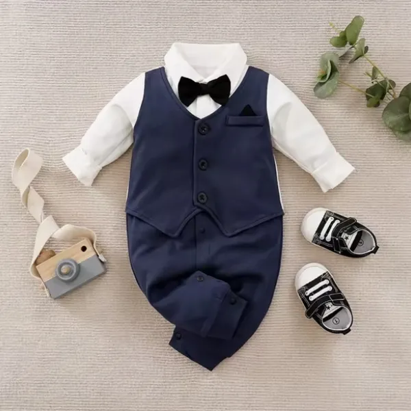 Бебешки ромпър за момче за изписване с елече и папийонка