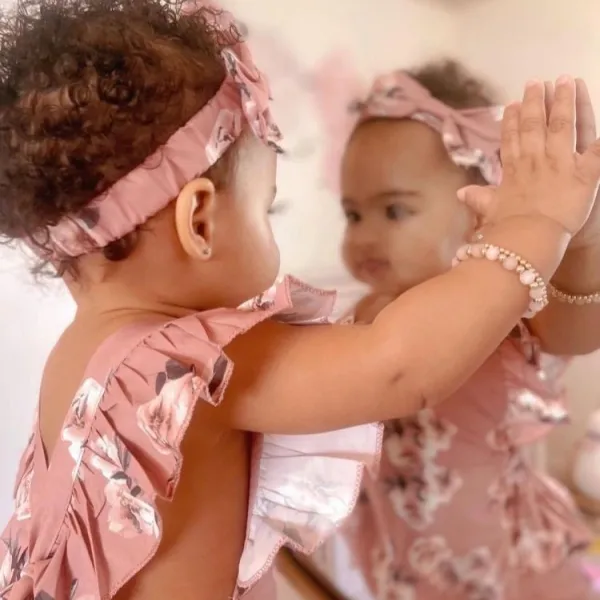 Нежно боди с флорален десен и къдри – стил и комфорт за малки дами