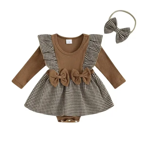 Бебешка боди-рокля в кафяво + лента за глава Autumn