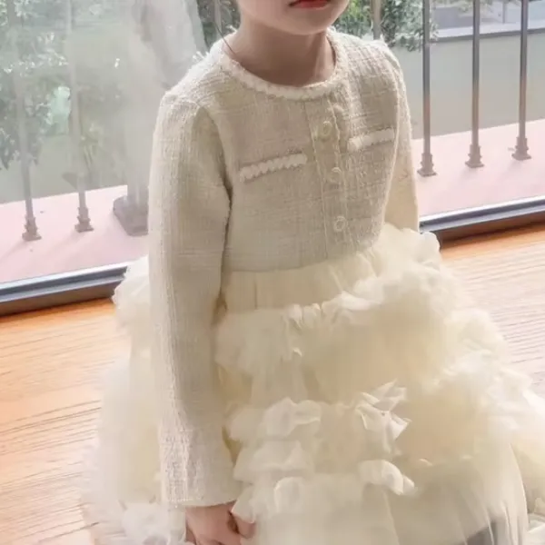 Детски комплект рокля с тюл и сако от букле Rouzi
