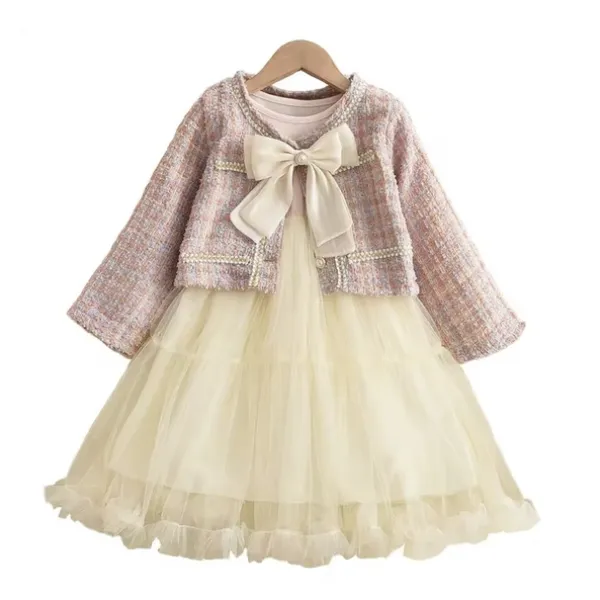 Детски комплект рокля с тюл и сако от букле