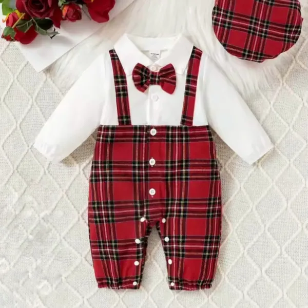 Коледен ромпър за момче с каскет – елегантен празничен стил