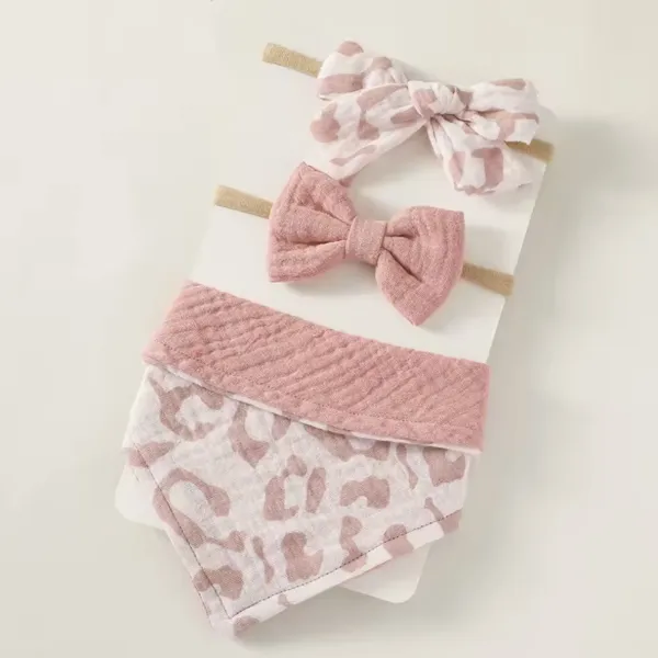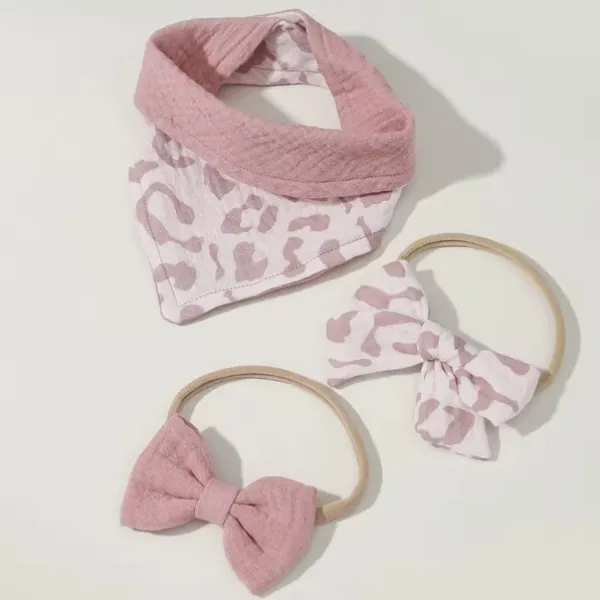 Комплект 3 в 1 бебешки лигавник с леопардов десен и ленти за глава е стилно и практично решение за всяка малка принцеса. Съчетанието от нежния цвят пепел от рози и модерен леопардов акцент придава чар, докато меката материя осигурява комфорт през целия ден.